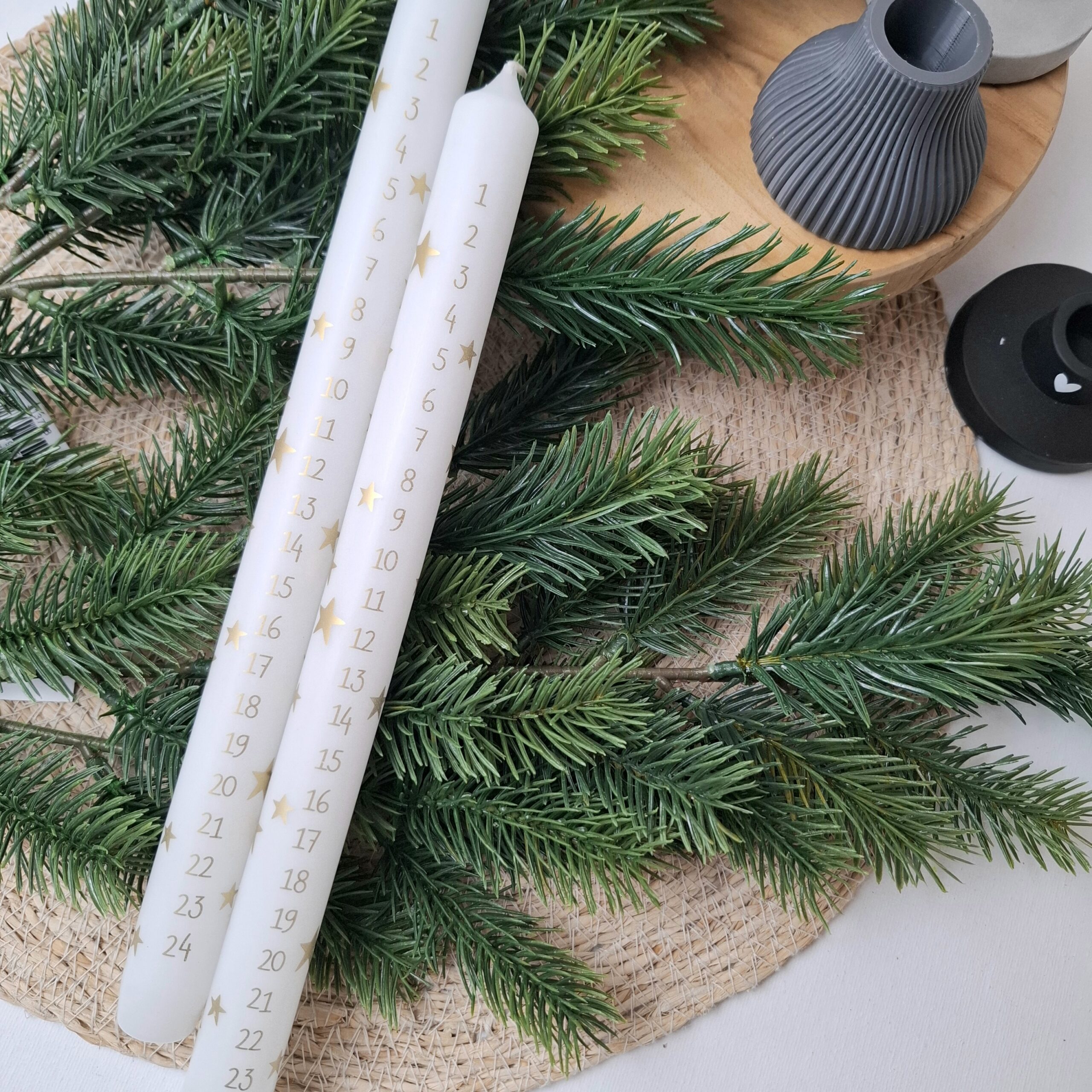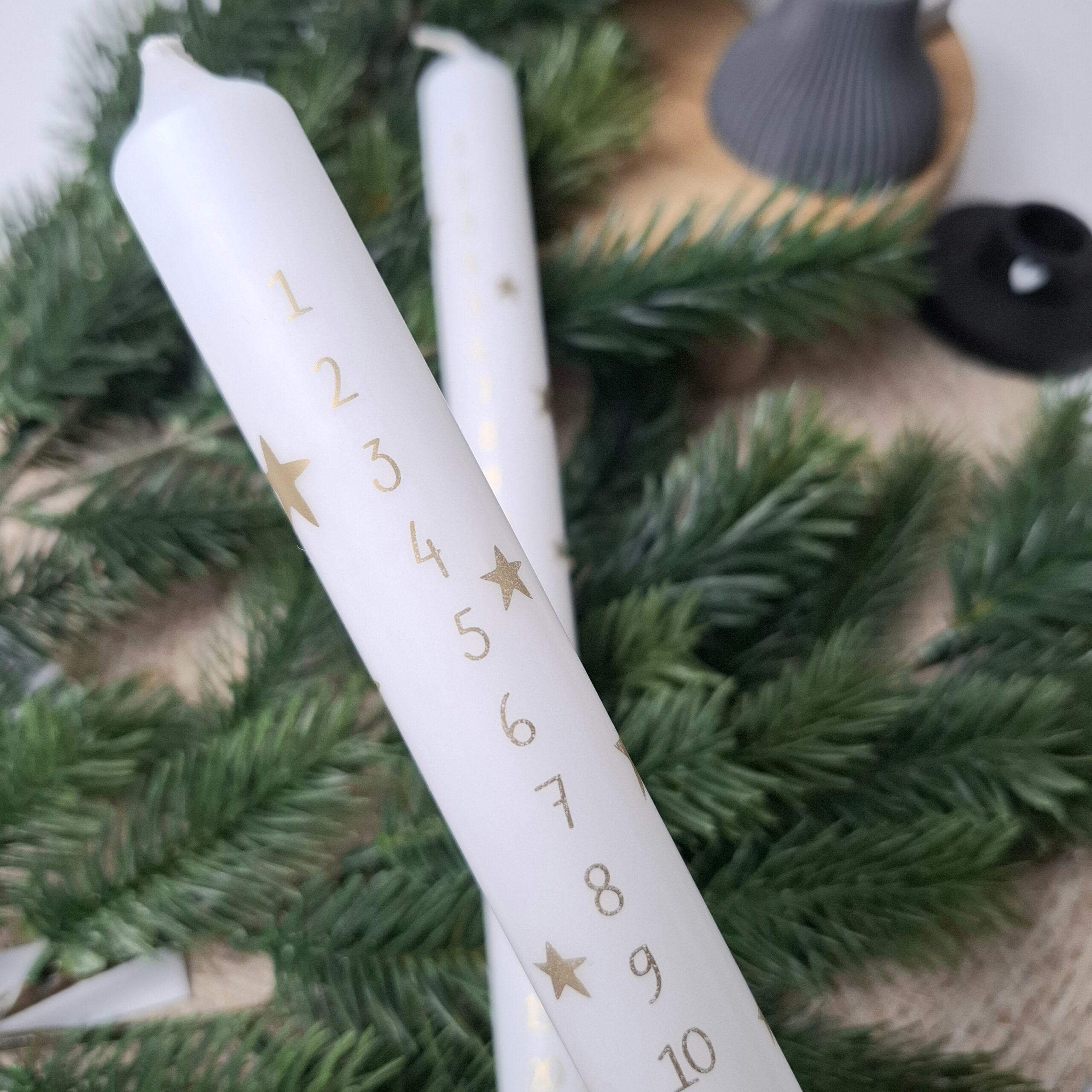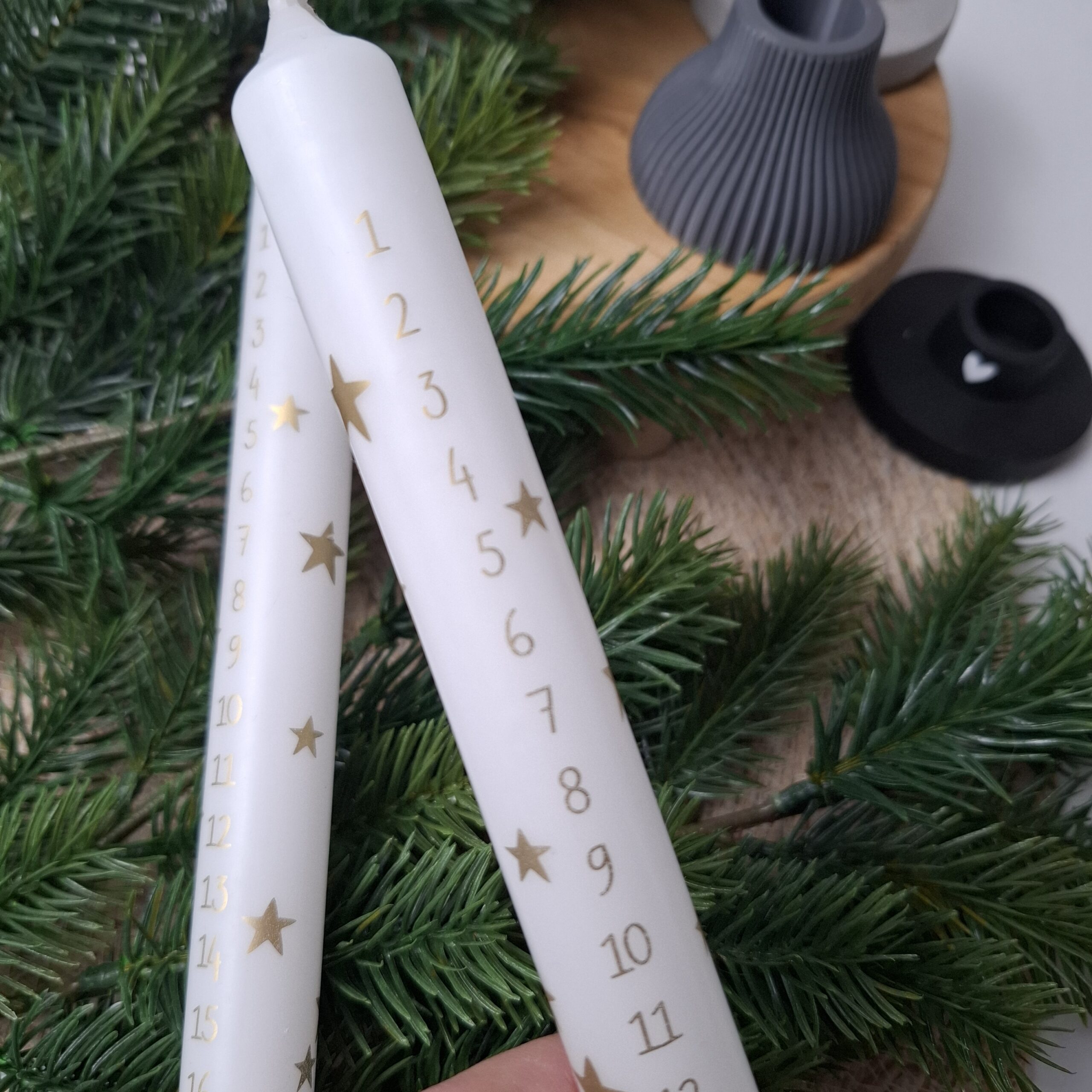 Aftellen naar Kerstmis met de adventkaarsen. Leuk om elke dag een stukje te branden tot dat het zo ver is.