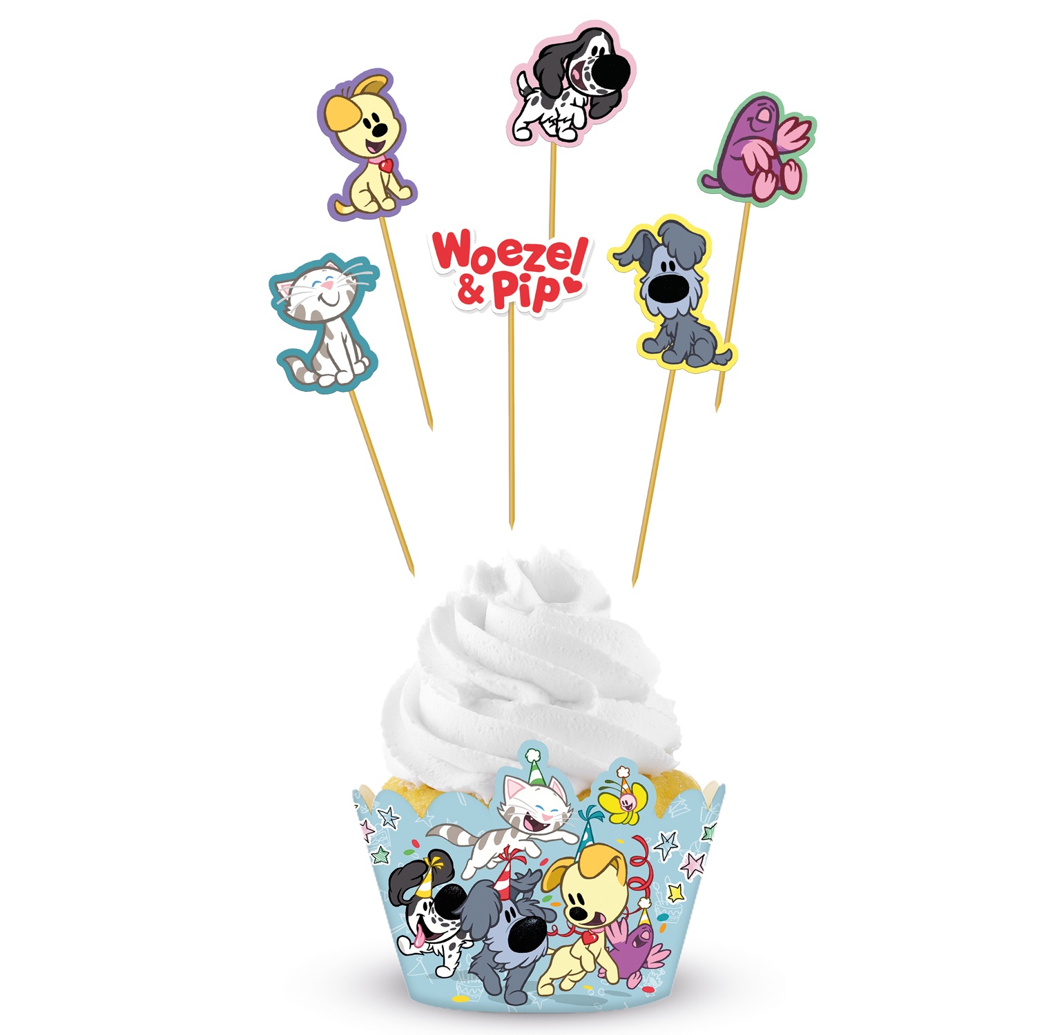 Cupcakes trakteren was nog nooit zo leuk, met deze prachtige Woezel en Pip cupcake decoratie set.