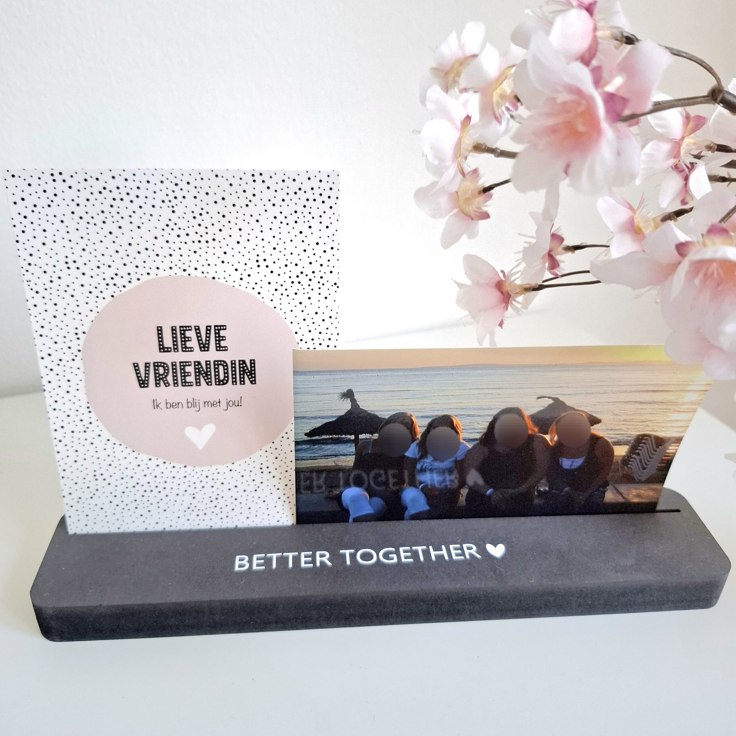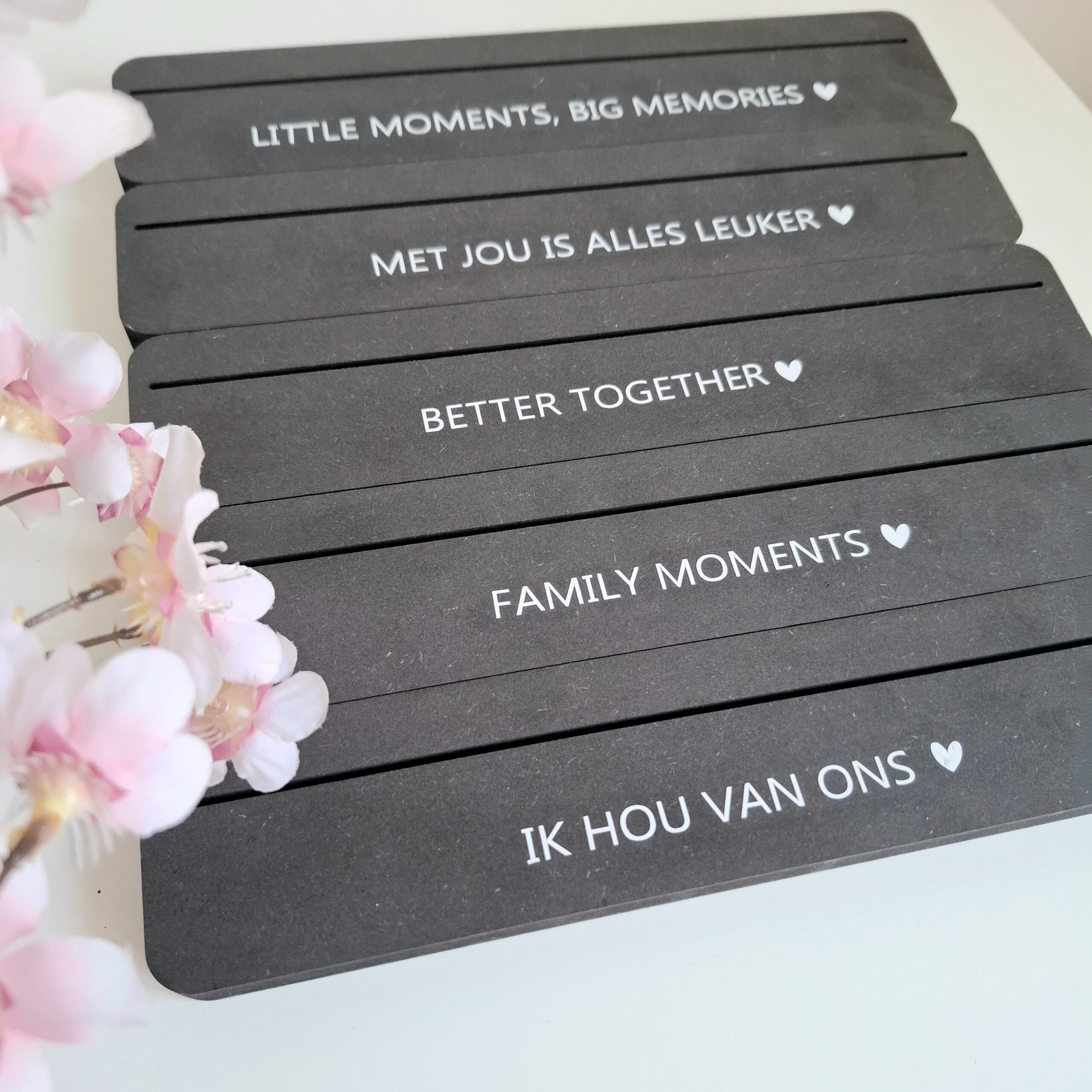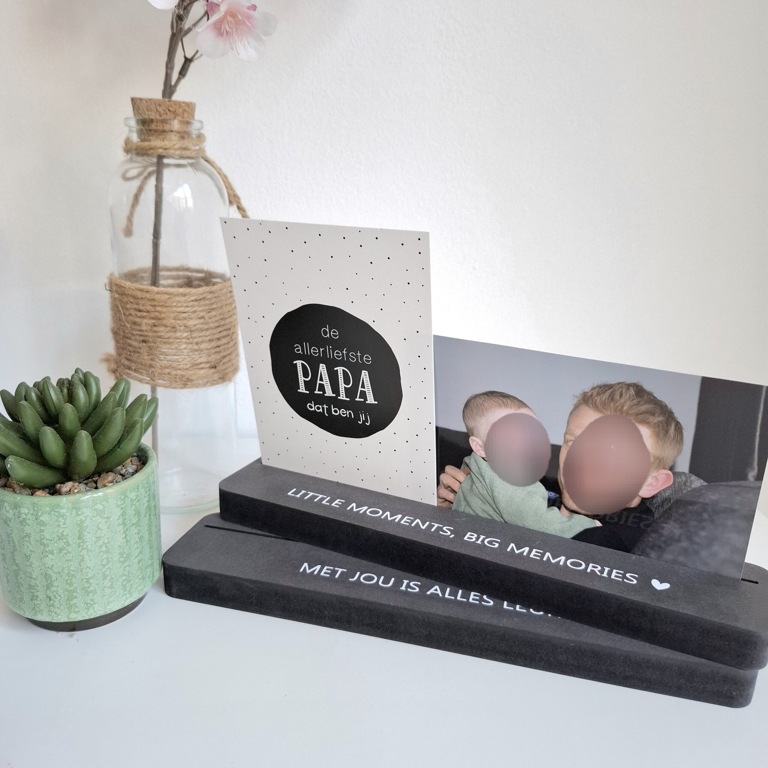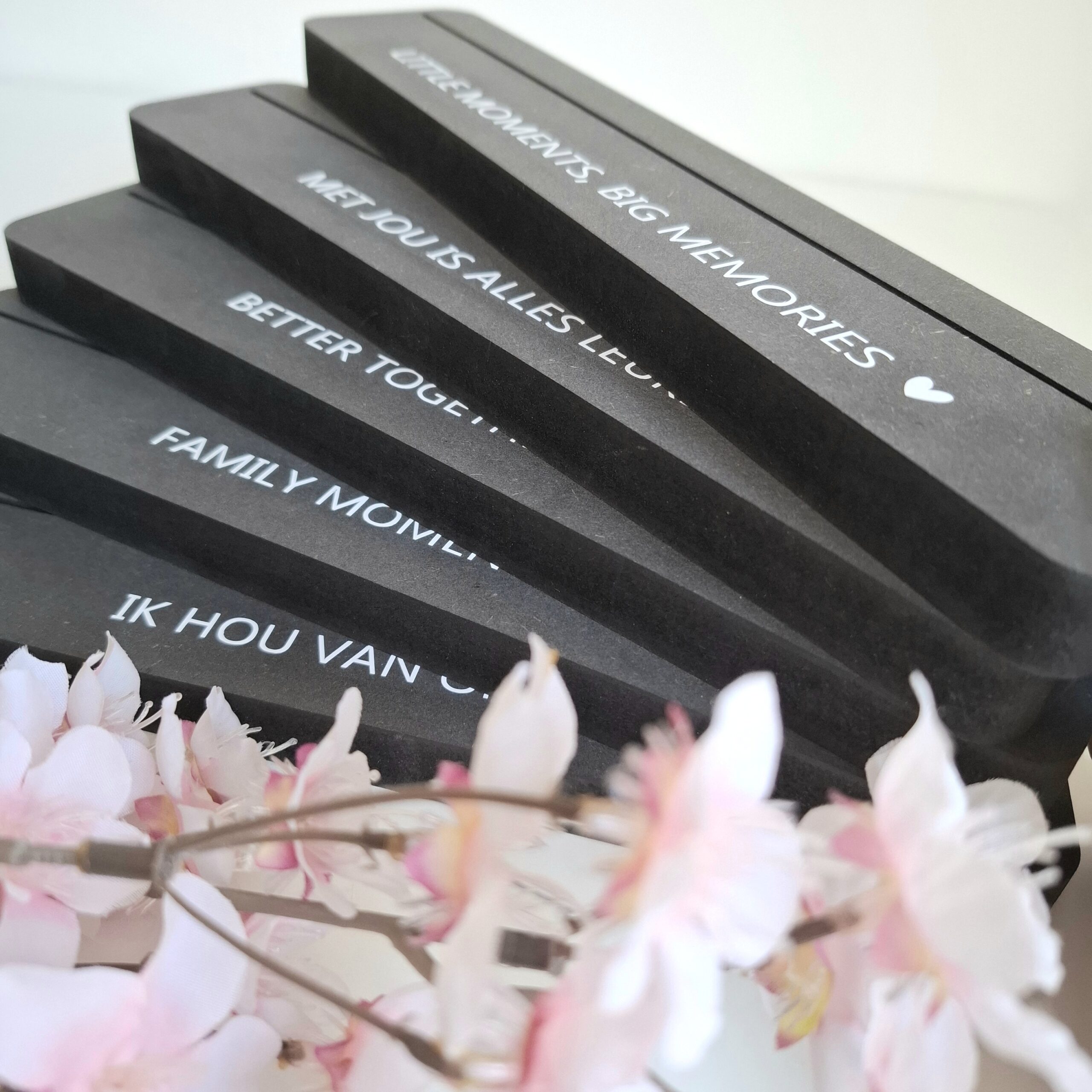 Zwart fotoplankje met tekst. Mooi afgewerkt, past in elk interieur.