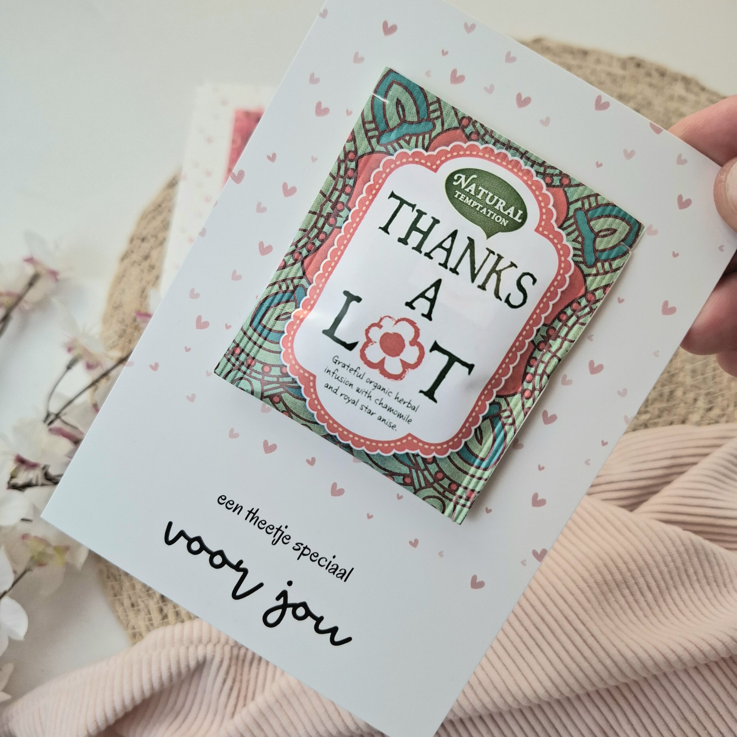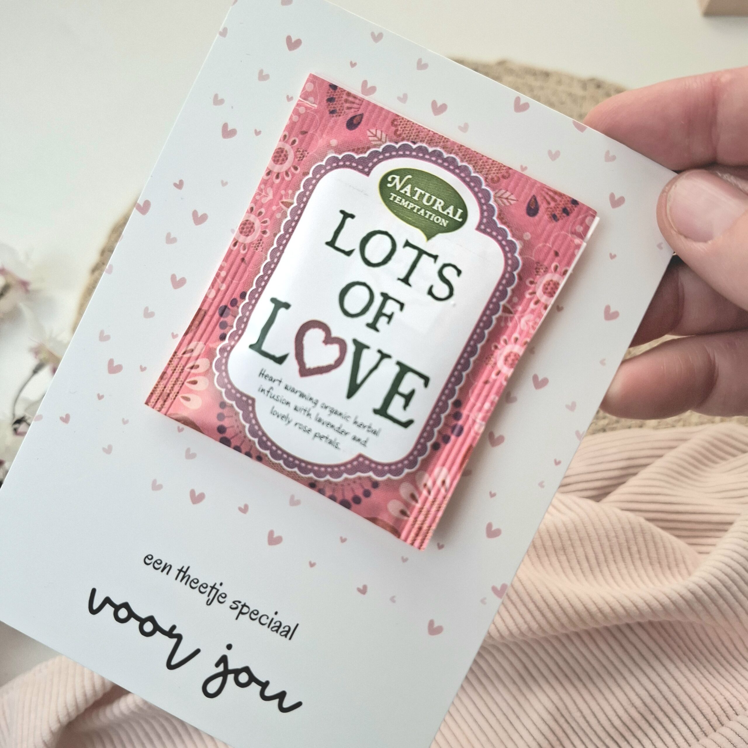 Soms zegt een klein gebaar meer dan duizend woorden. Met deze lieve kaart en een heerlijk zakje thee geef je iemand een warm moment van rust en waardering. Perfect om jouw liefde of waardering aan deze persoon te tonen.
