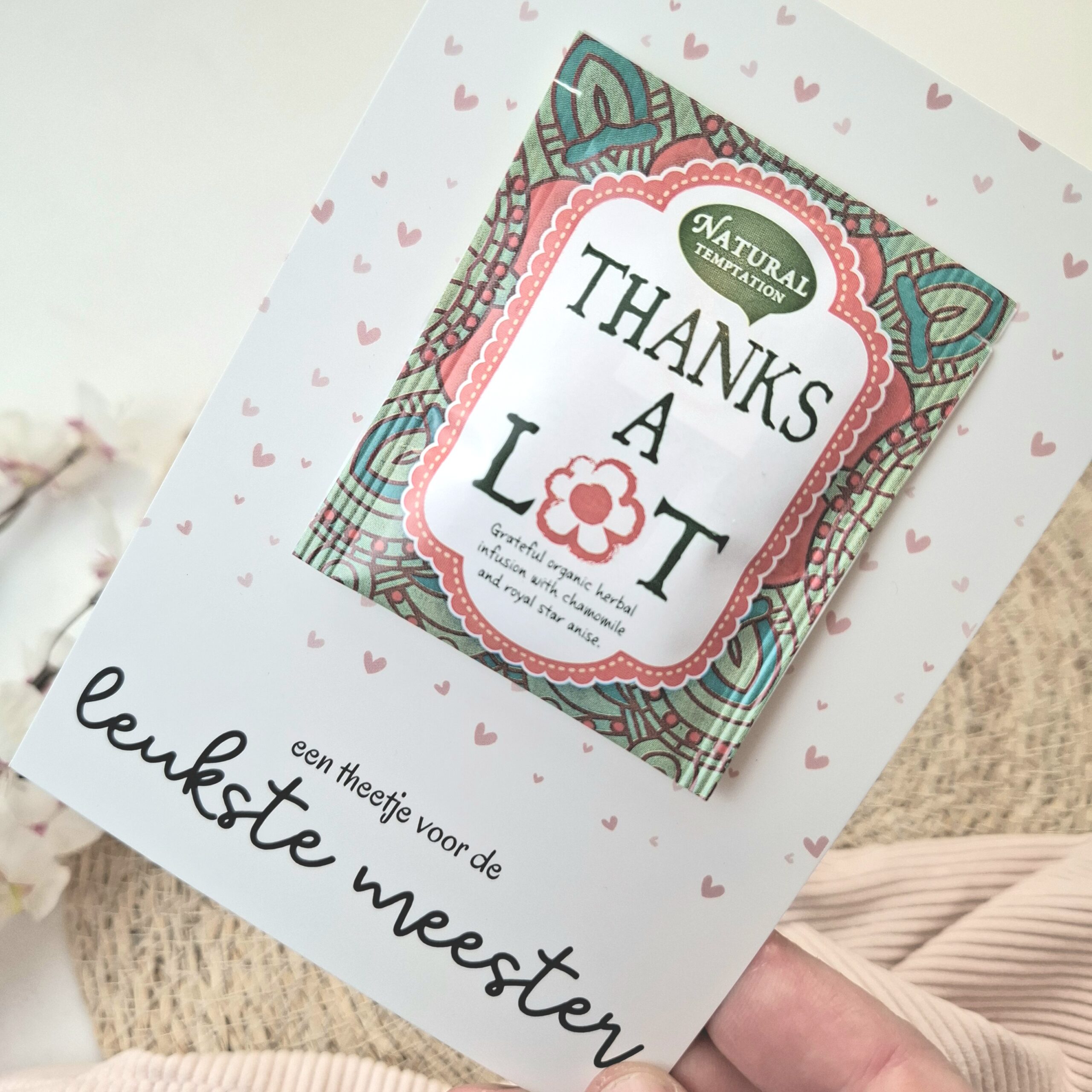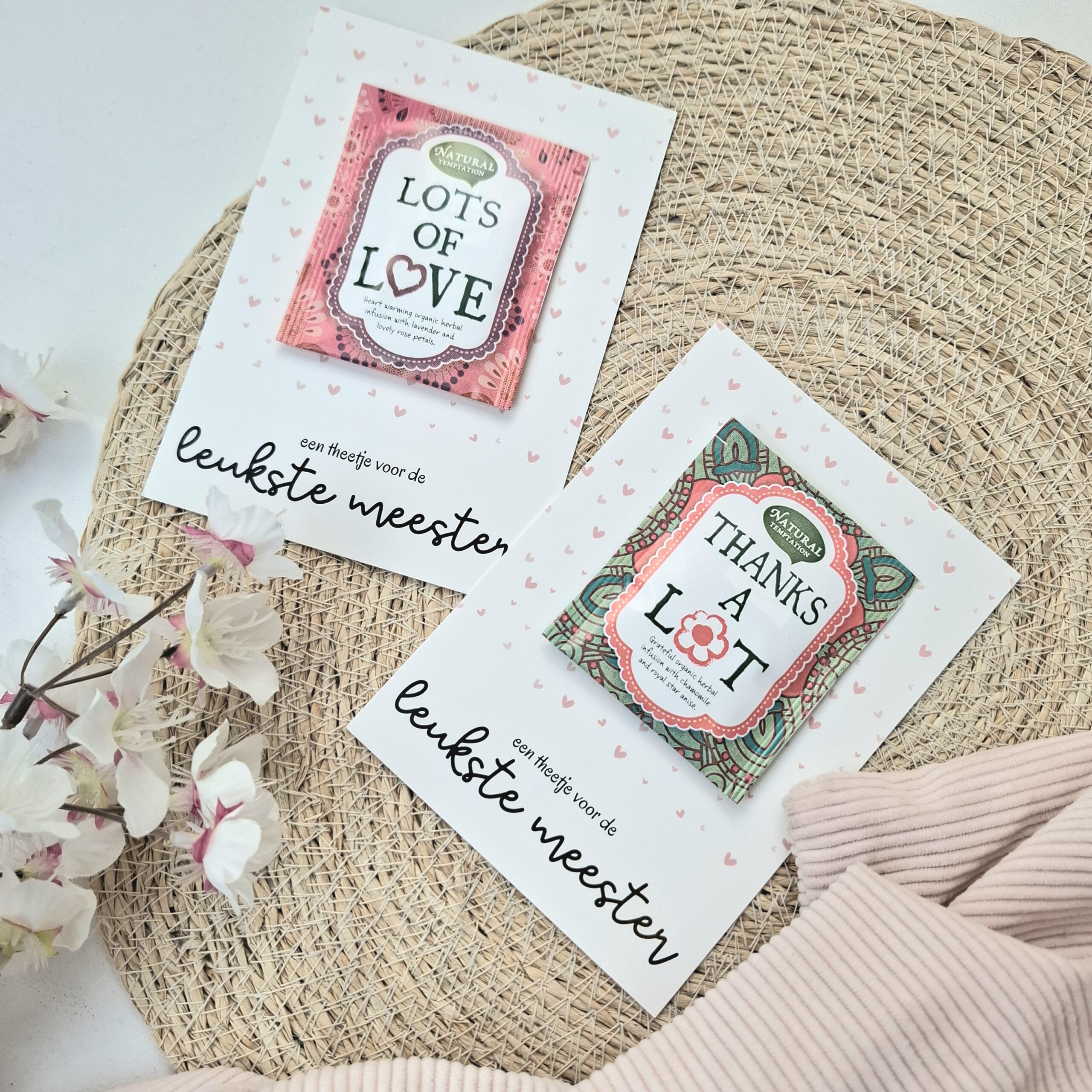 Keuze uit thee ‘thanks a lot’ of thee ‘lots of love’