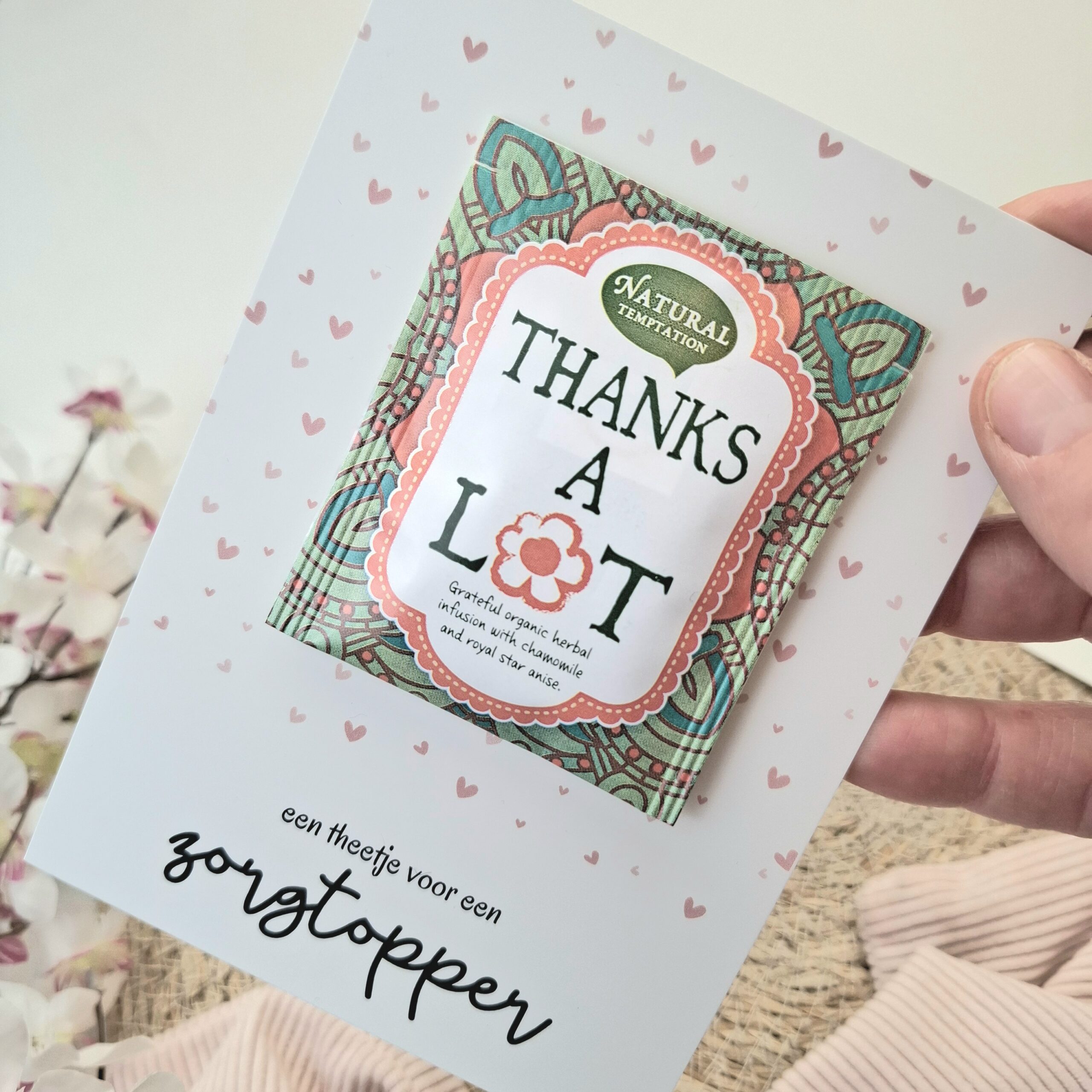 Keuze uit thee ‘thanks a lot’ of thee ‘lots of love’