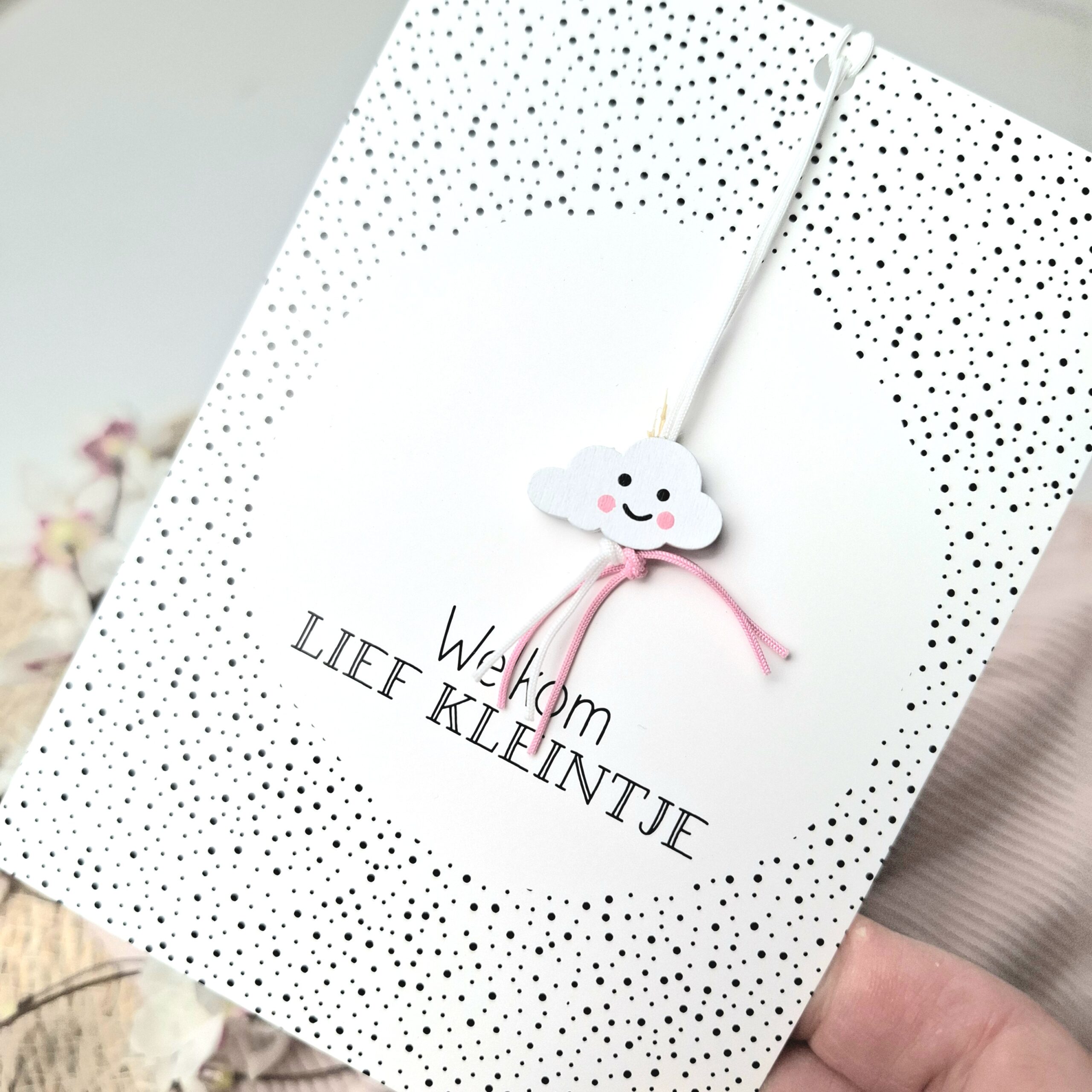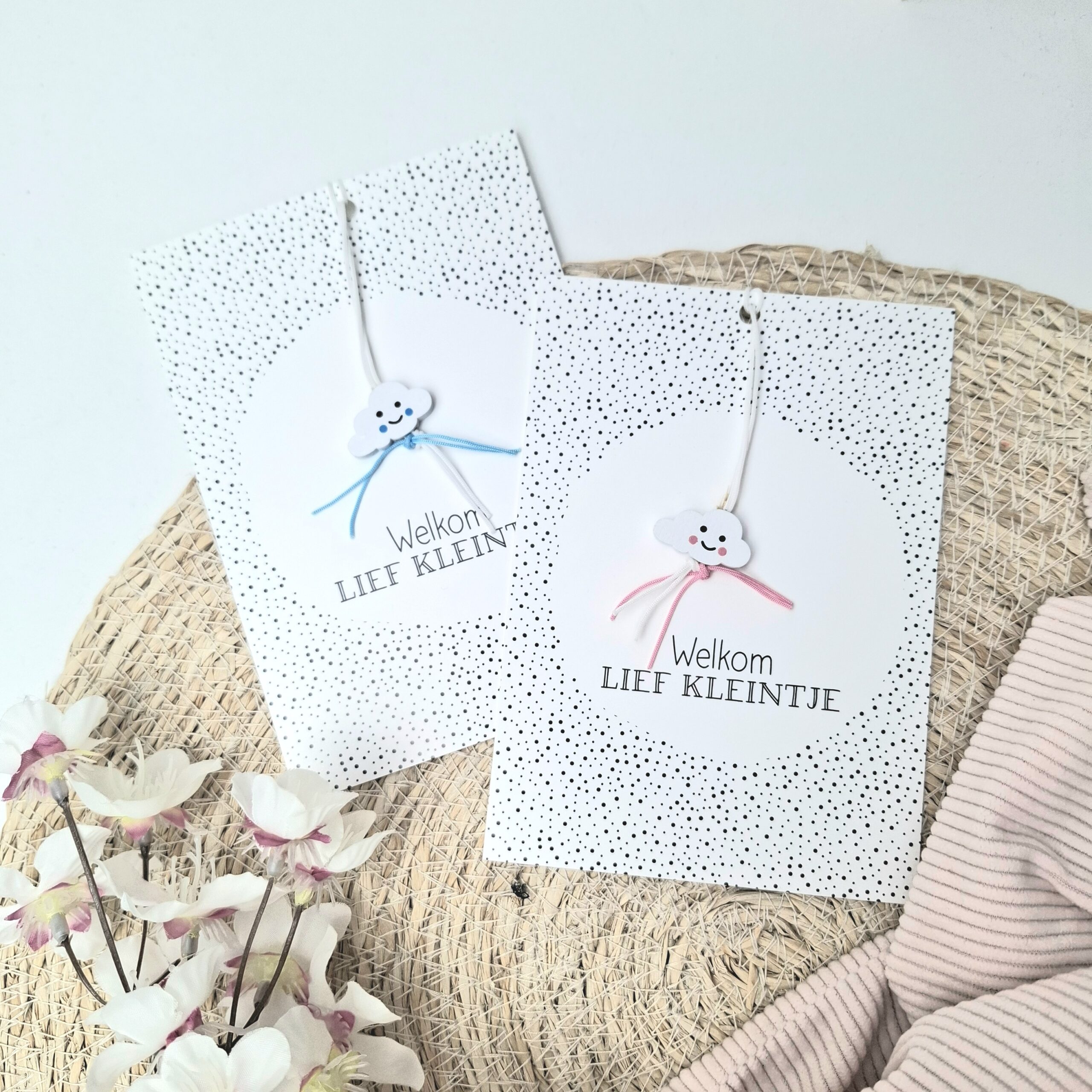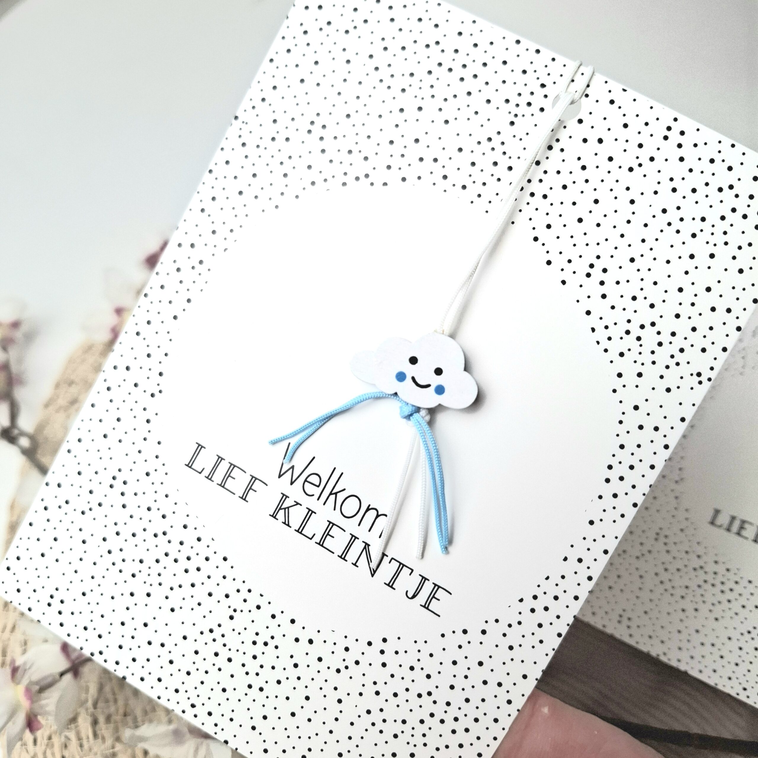 Vier de komst van een nieuw wondertje met deze prachtige wenskaart. De kaart is voorzien van een lief wolkenhangertje en de tekst “Welkom lief kleintje”, waardoor het niet alleen een mooie boodschap overbrengt, maar ook een blijvende herinnering wordt.